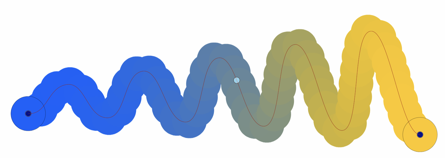 When a blend effect is aligned along a path, the position of the source and target objects can be adjusted: