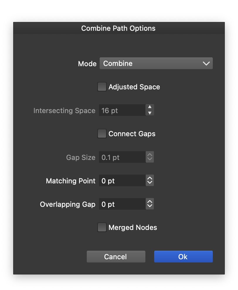 The shape combine operations use several options to control how strokes or open shapes are handled, and how to deal with complex appearance of objects.