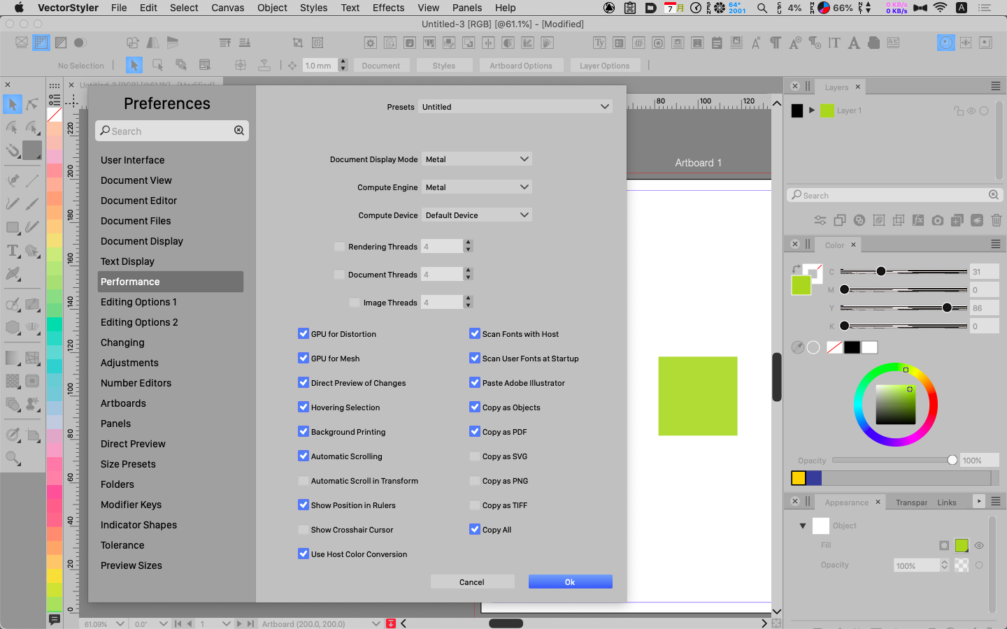 This is reversed when VS is again in the foreground. Maybe it is settings related, but it sure is odd. I have for now refrained from changing any settings other than pertaining to the document size, etc. given the number of unexpected behaviors I am experiencing.