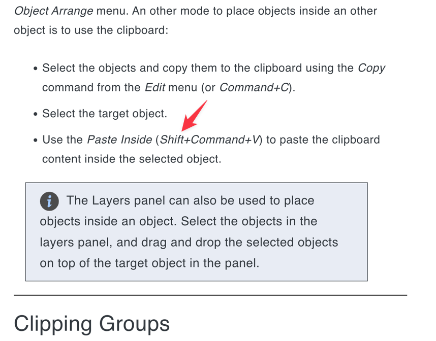 For example, if we have a clipping path, and we double click, the content (clipped objects) are edited. This is true even if there is no content, as we can draw new objects inside an other object.