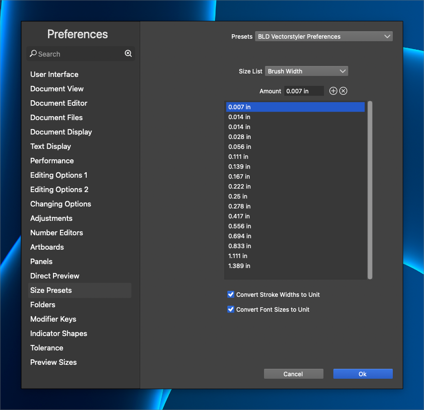 @VectorStyler Stroke width seems to be working correctly. However, with font size and brush width, it adds a new size to the list, but it's not the right number. You have to close out the panel entirely and reopen to see the updates.