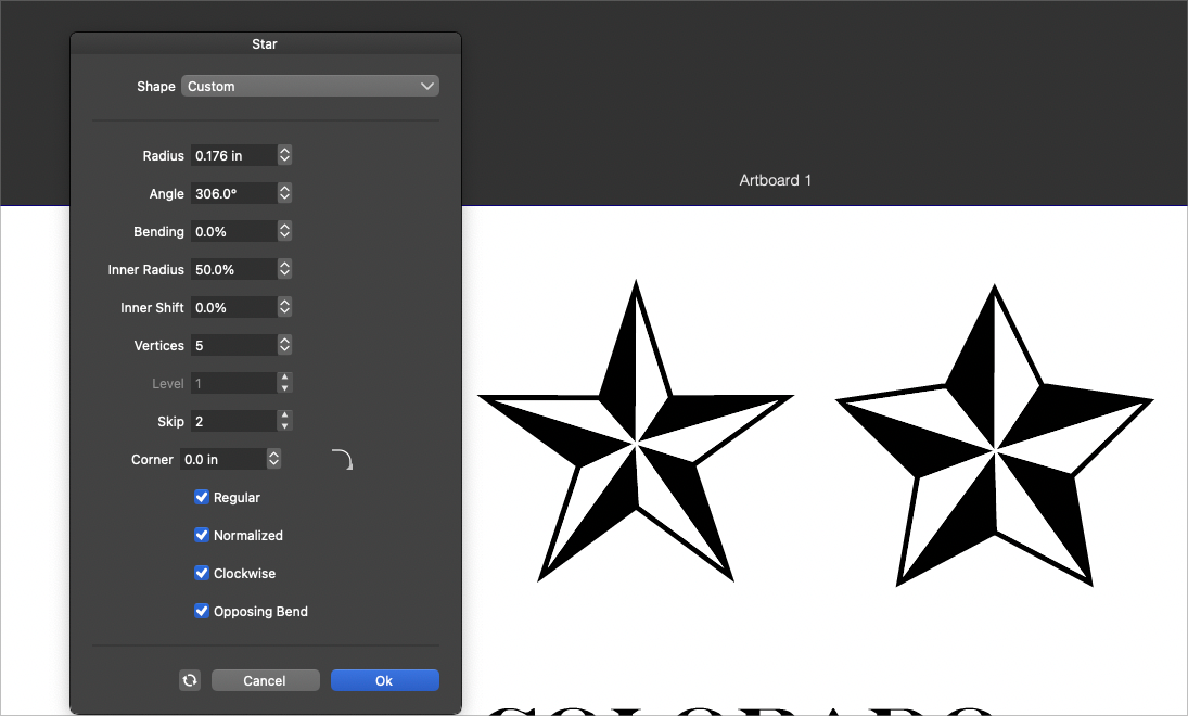 • Skew option on star shape tool