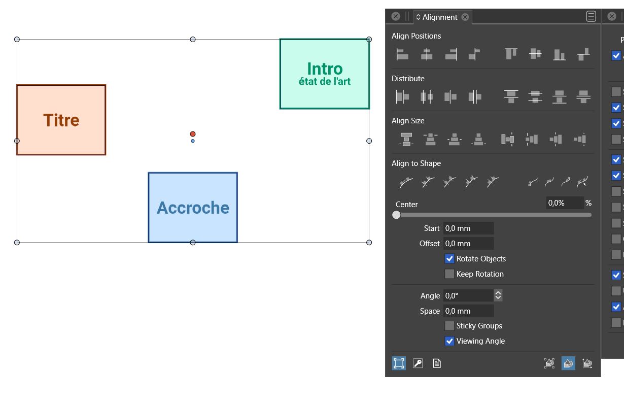 using what Corel currently has that you demonstrated in part, how would you tell corel to align using the other align options with the specified amount?