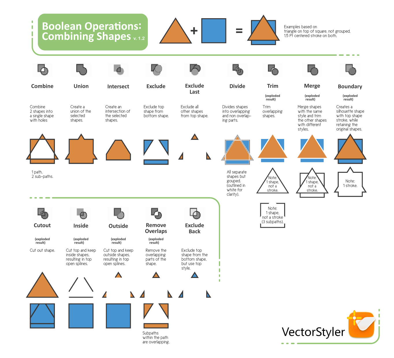 To say thanks to all in helping me on my learning journey, I have been keen to document some of VectorStyler’s in-depth features. To start off, I created a 2-page reference document for the Boolean Operations (PDF LINK BELOW). I did this because it was a challenge to wrap my head around all the differences between the extensive Boolean combinations. I thought this Tutorial section of the forum was a good place for this, as it contains the VectorStyler Manual, and hopefully my contribution helps with people’s learning.
