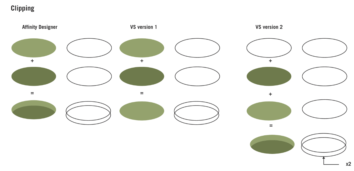 In Affinity Designer, we just clip the "child" object inside. Both child and container have their own color, and the child is visible. Since I have to do one more operation I wonder if there's an option I missed or if it's the usual way.