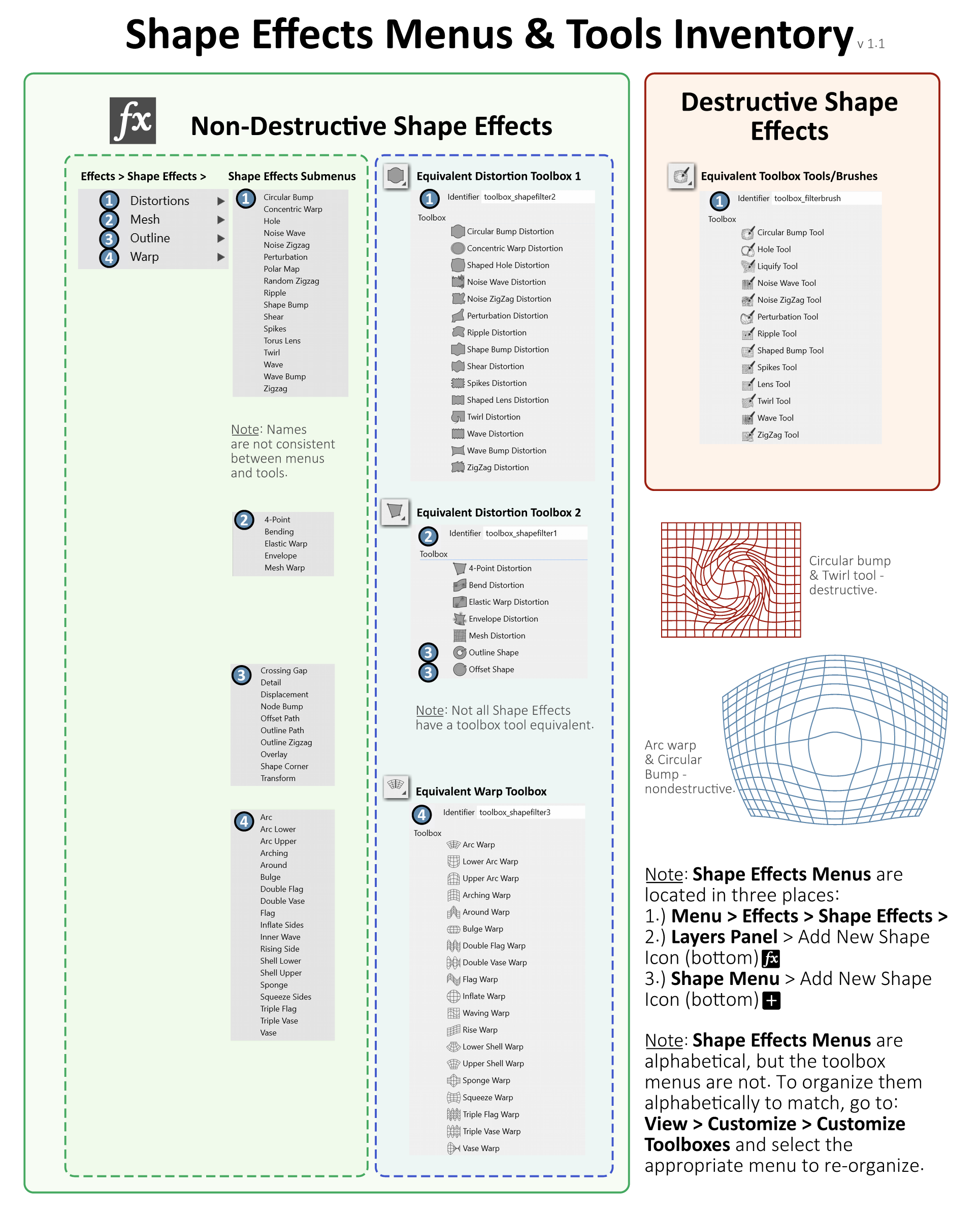 Shape Effects Inventory - a Reference Guide