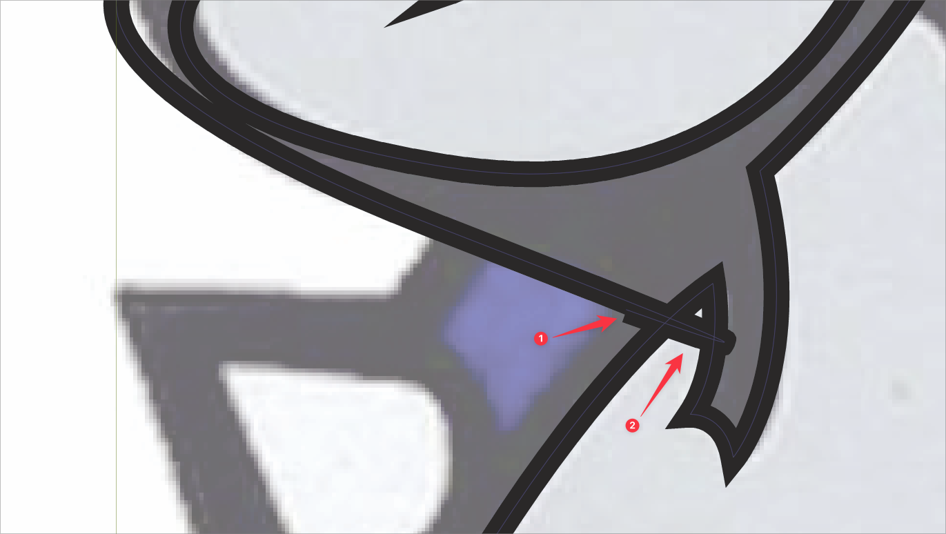 I am running into the occasional issue with the path overshooting instead of stopping at the node last placed. In this example, I brought the black stroke over from the left side and was trying to make a node at the right edge of the blue area. (#1 in the screen capture) it made an overshoot instead... (#2 in the screen capture)