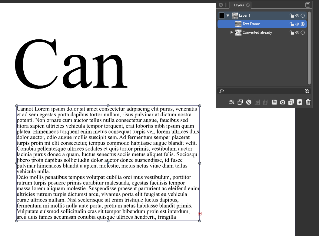 @VectorStyler said in I cannot convert a text frame to curves:
