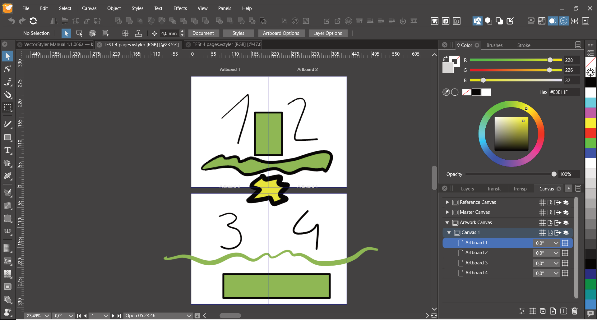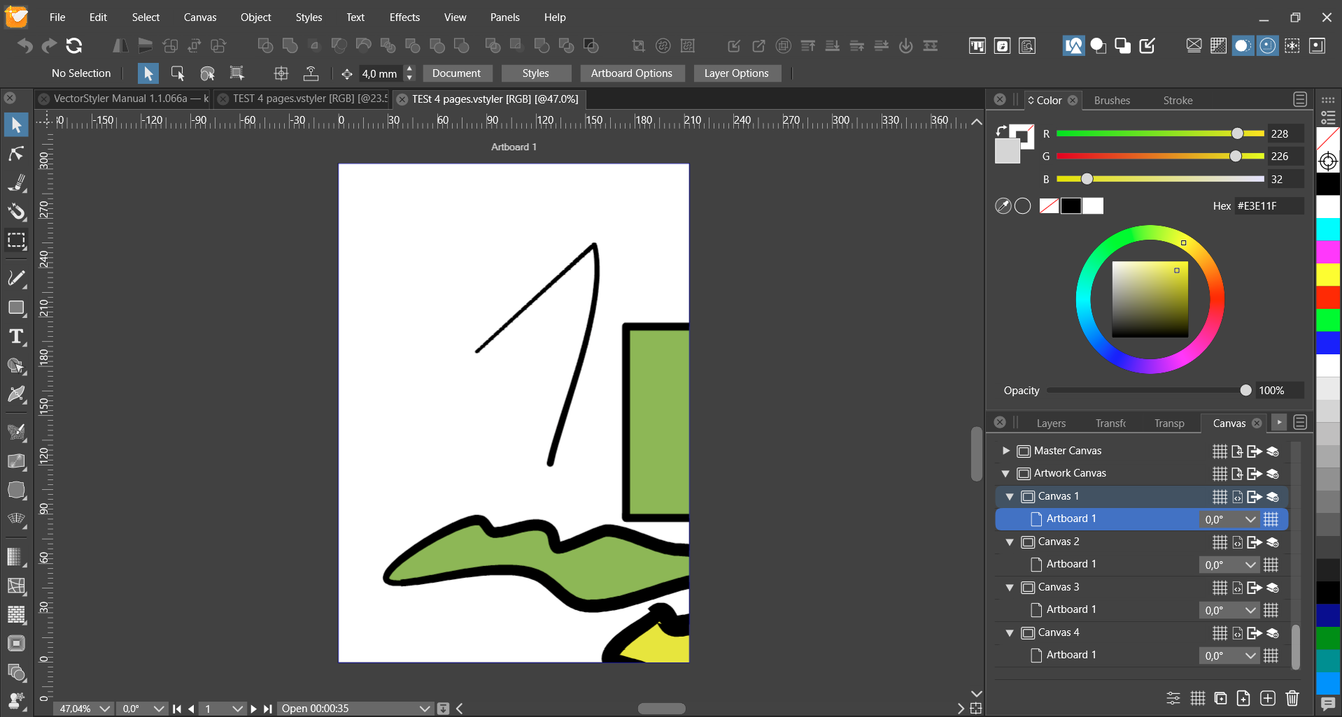 A VS document can have multiple canvases, that are accessed from the Canvas&Artboard panels.