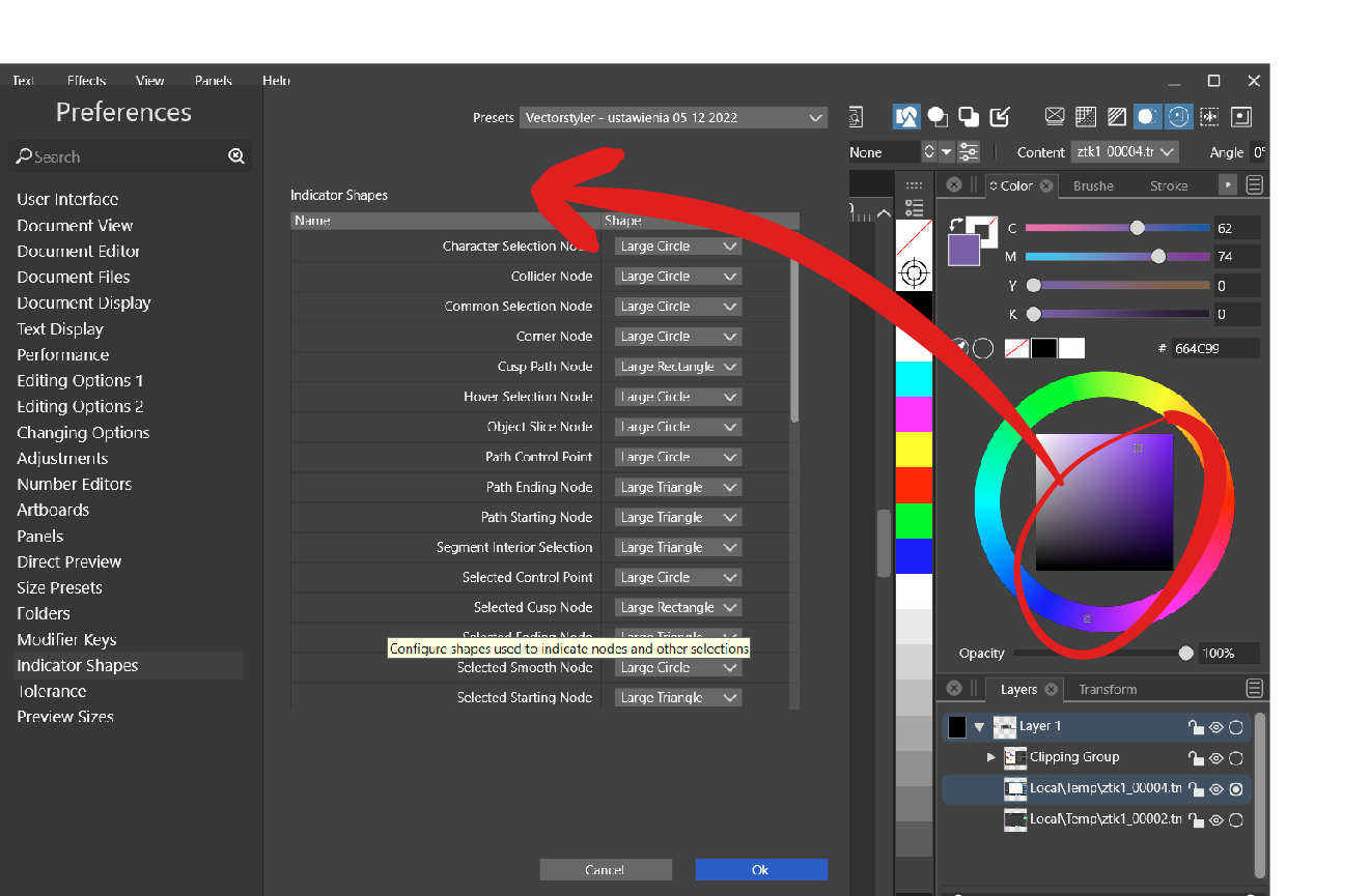 - Could Color indicators be added to Preferences/Indicator shapes to make it bigger? On some colors they are hardly visible: