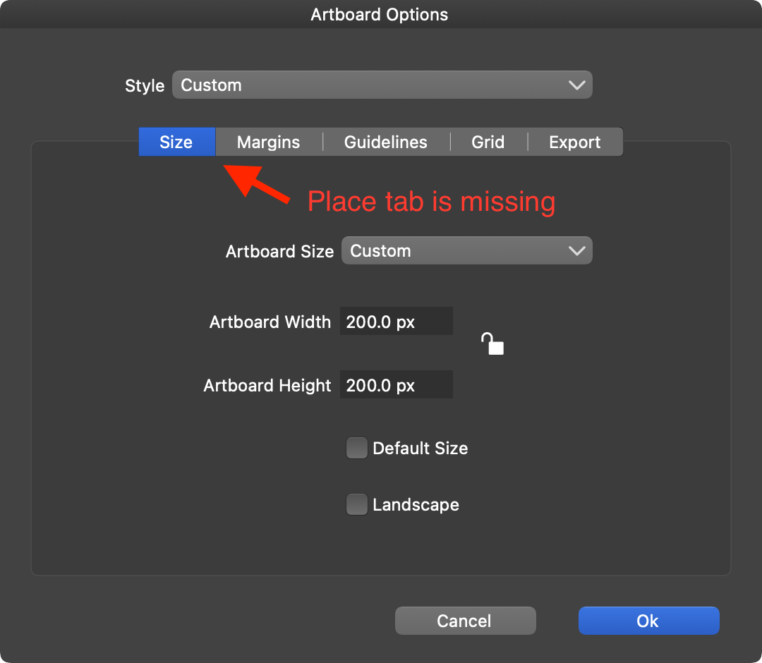 Why the "Place" tab in Artboard Options dialog is sometimes there and sometimes it isn't?