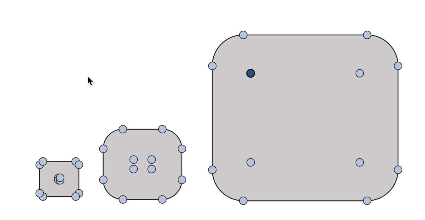 The corner indicator circles are big and don't scale proportionally, getting in the way of design, sometimes overlapping.