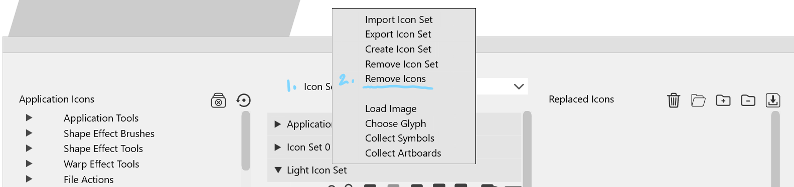 there with the 'Import Icon Set' command from the dropdown above the column. -