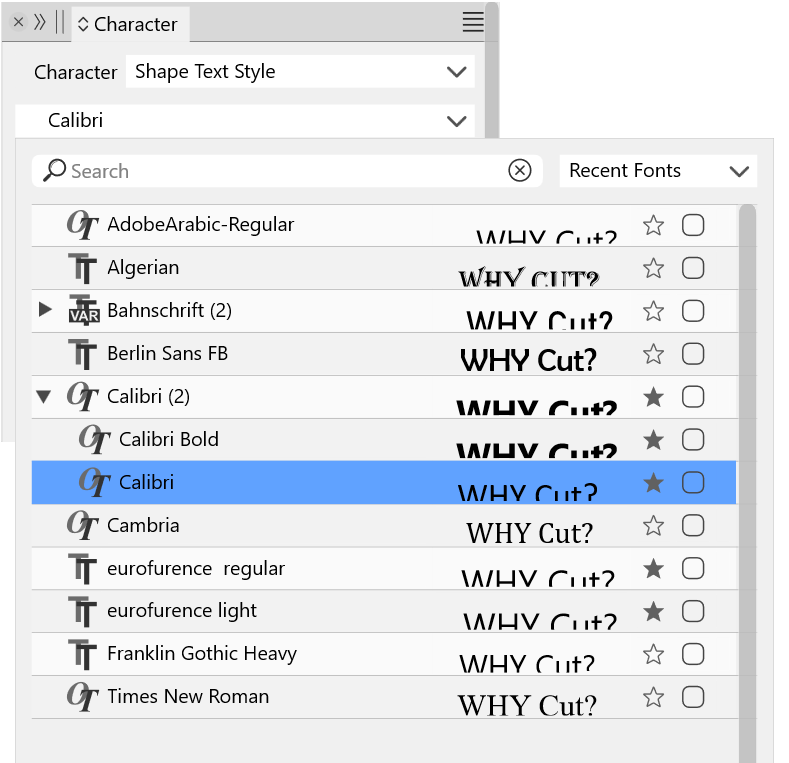 Fonts, Arrows, Bullets Cutoff in drop downs