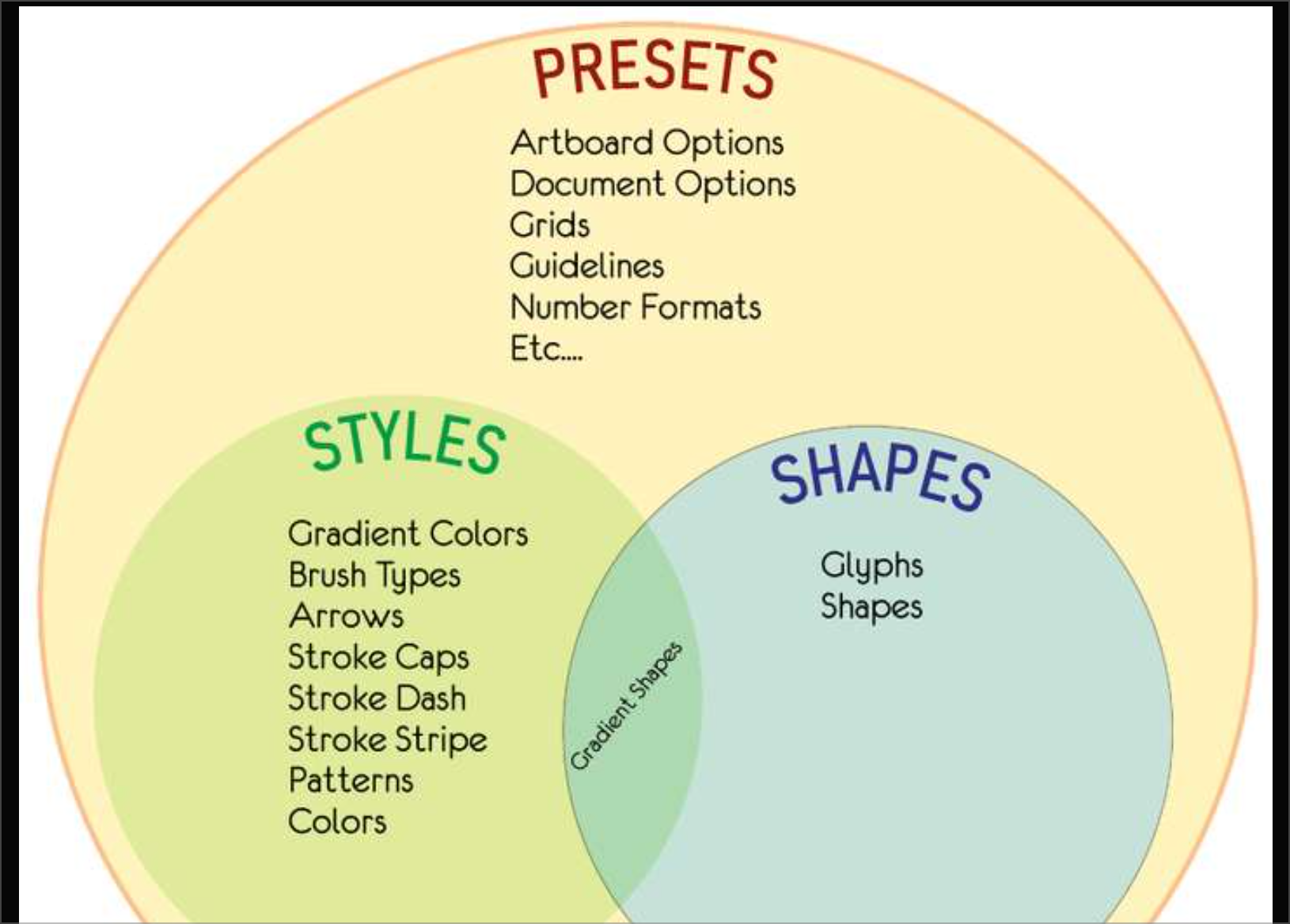 What got me excited about this chart was that it delineates the concept of Presets and the concept of Styles, and removes them from being associated with WHERE they can be SAVED.