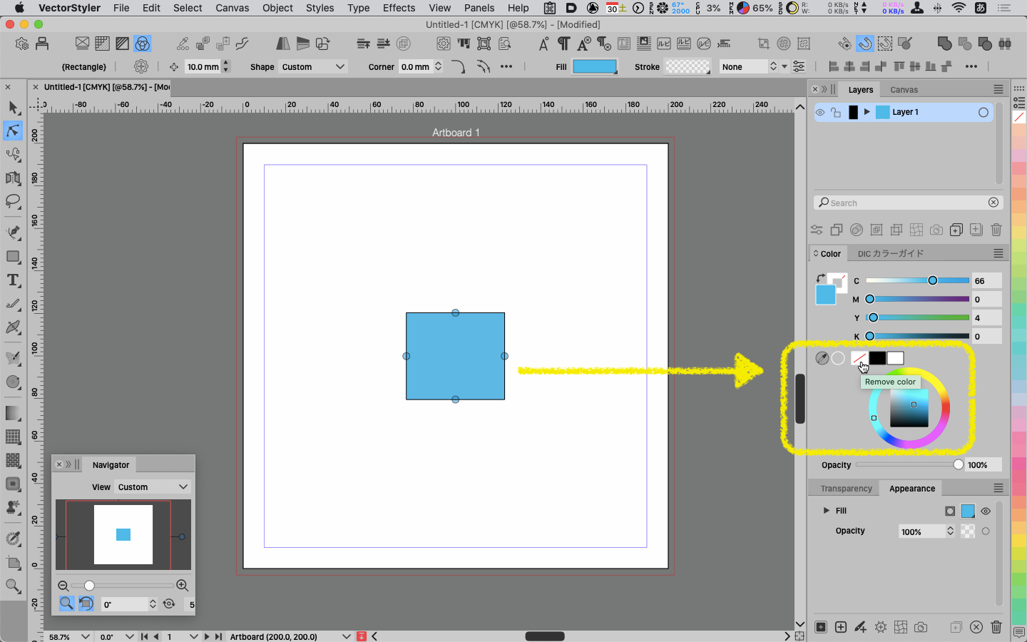 What I need now is a shortcut for [Remove color]. That is to correspond to the tip at the bottom of the color panel.