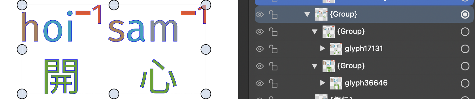 @jkwchui Can you send me a VS file with that text (before expansion) using the font. I assume that this is the VF-Canto font.
