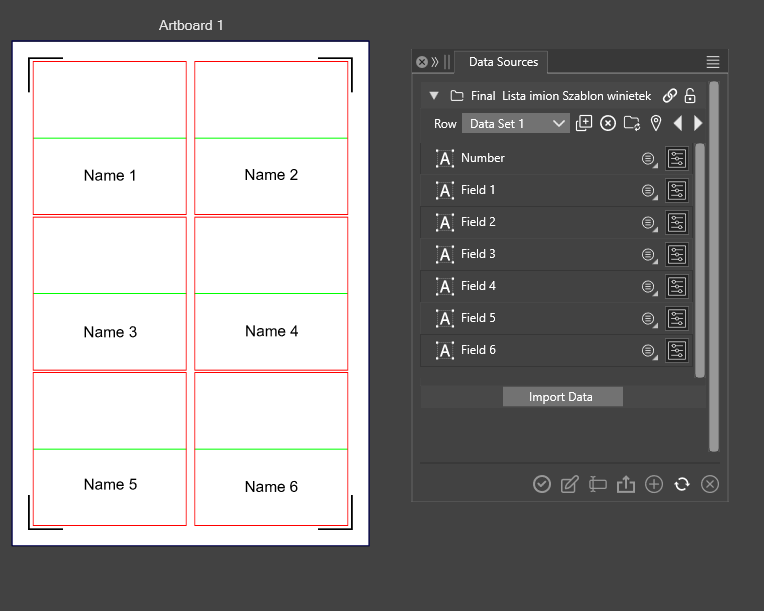 The project is to take the data and put the corresponding names in the 6 fields of each artboard.