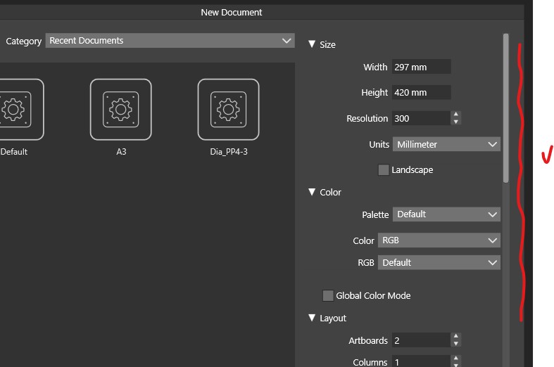 New Document Setup