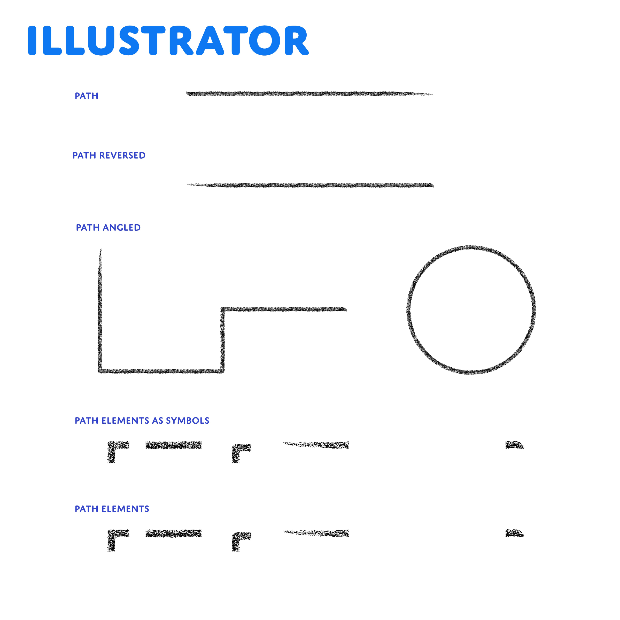 in the illustrator file, i’ve dragged the existing pattern brush [from the Brushes Panel] to the canvas. i then created the swatches and symbols from those brush components. the sample paths show revered, angled and a closed circle.