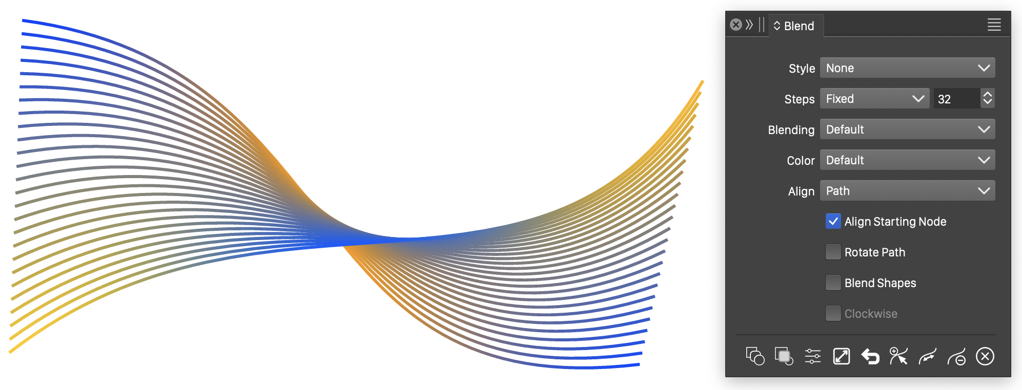 - Blend Panel - Describes how to use the Blend panel to create and modify blend effects on selected objects. The Blend panel is the easiest way to control the blending options.