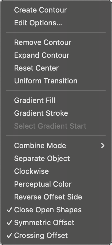 - Expand Contour - Expands the contour effect into a group of contour objects, and removes the contour object.