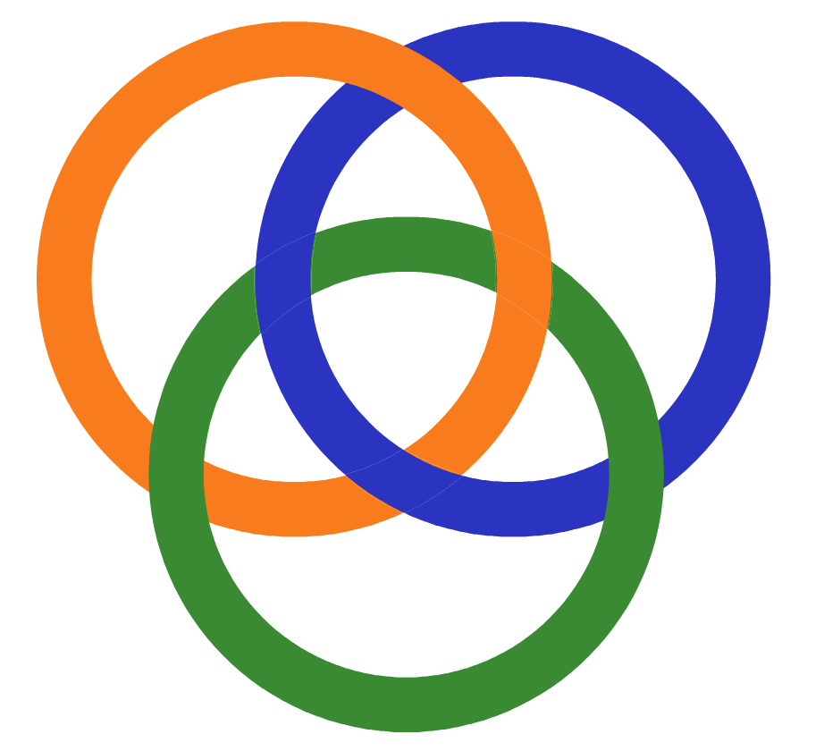 Intertwine groups can be used to rearrange object order at specific regions, without changing the actual object order. This enables the creation of editable non-destructive planar vector graphics, otherwise not achievable with regular object stacking.