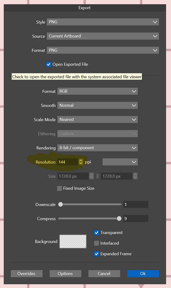 @VectorStyler It's fine to set that field to mirror a default, but optionally, it could be empty/deactivated until actually needed. Perhaps prefill with the document resolution or a sticky value (ex: "last used"), etc.