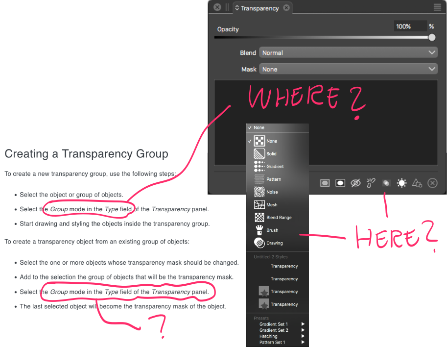 • Creating a Transparency Group - how to do that?