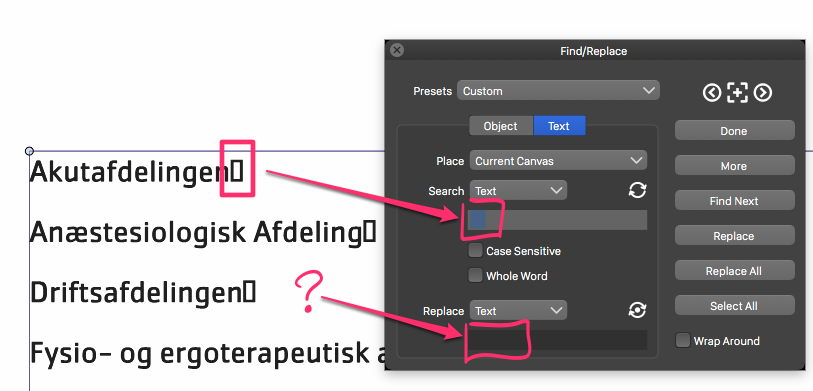 • Find/Replace: How to swap a text symbol with a line break?