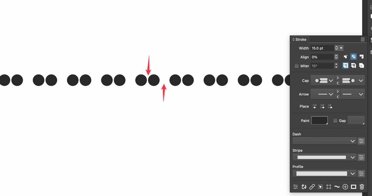 • How do I reset the gap between the dashes (dots) to even spacing?