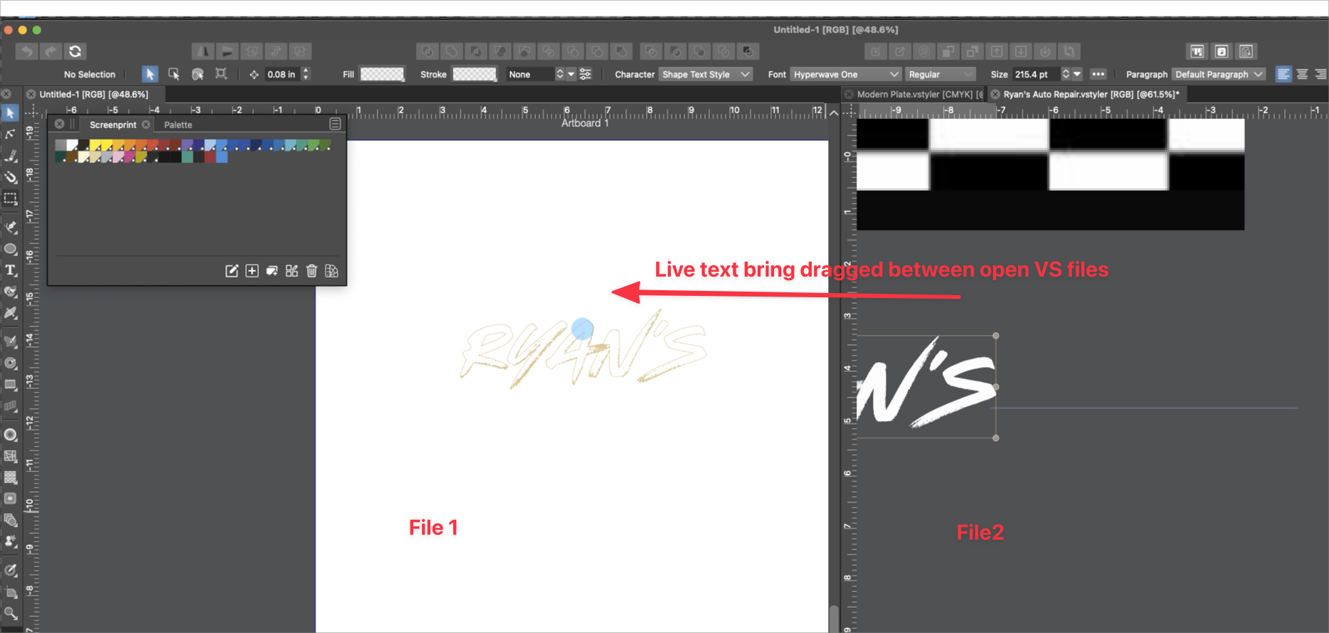 Moving a vector object or text between two open files set to be side by side - crashes VS