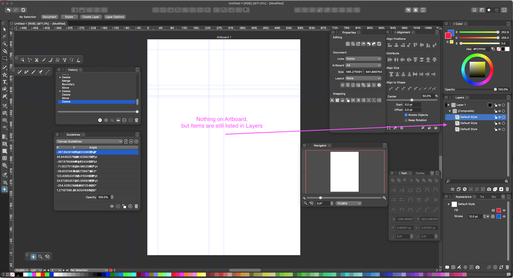 The composite shape was empty because the result from combining the 3 shapes was an empty shape due to a bug. The bug will be fixed in the next build.