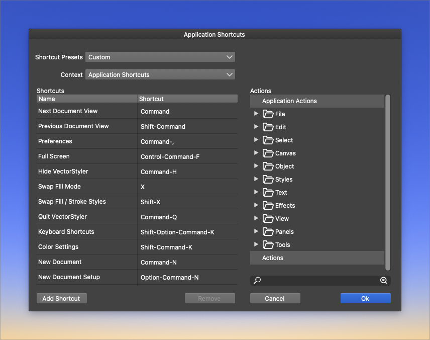 I think it would be very helpful to add a check-review warning dialog box to the Application Shortcuts in the case someone tries to add a shortcut to the list that already is already claimed by another shortcut. Ideally it would tell you what task that shortcut is already tied to and give the option to override the existing or change the new shortcut to something else
