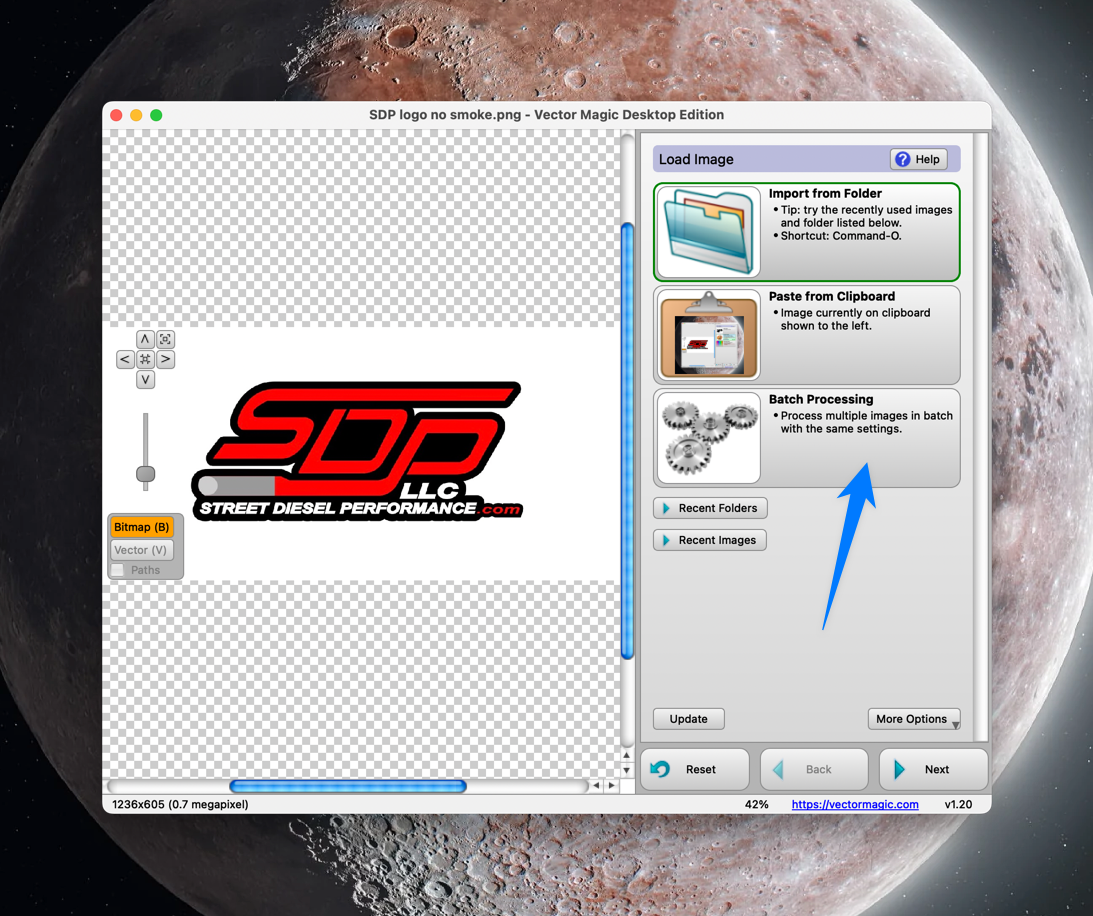There is an option for batch processing, which I have occasionally used when there are multiple images I want traced and all to be a high quality sample to pull from.