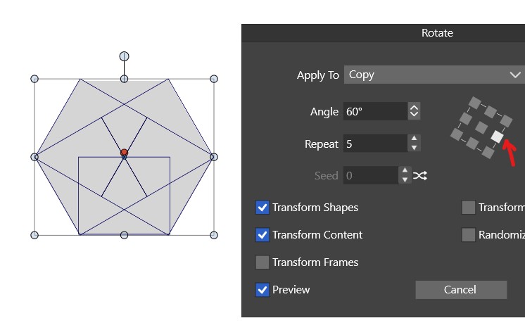 I wanted to repeat a design and used Transform object: