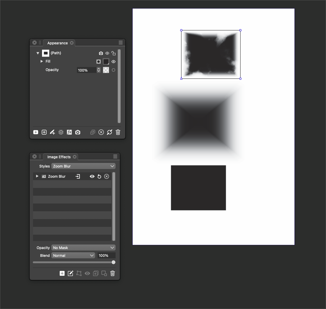 I was wondering if there is an all-encompassing way to see all effects and styles active on a selected object in VS? I was thinking the appearance panel might list them all including image effects. If you clicked on the listed image effect in the appearance panel, it would open the image effect panel, etc.