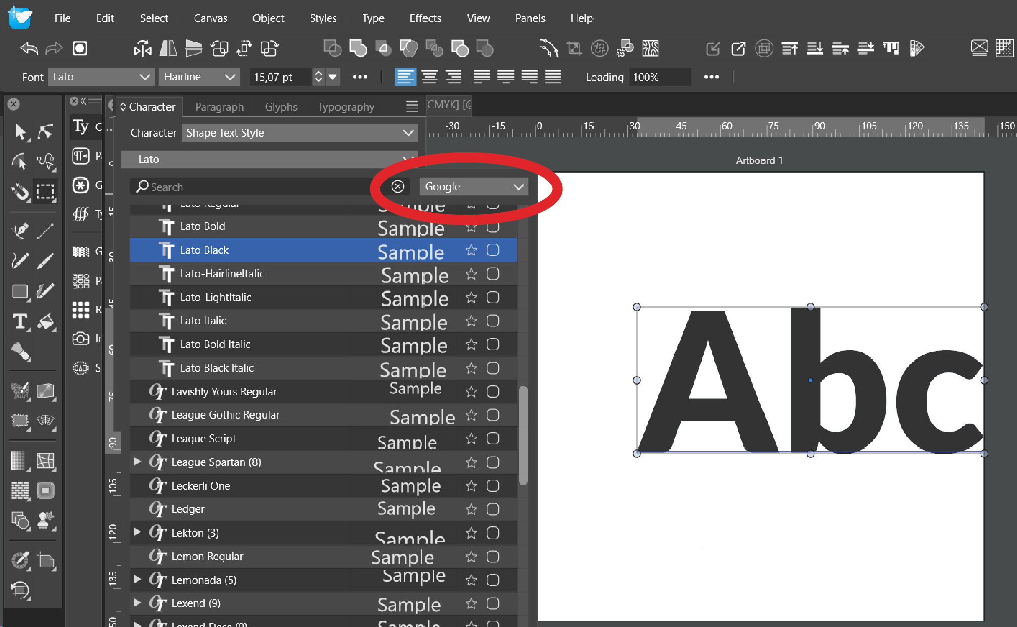 Font family isn't highlighted while Font collection is set to "All Fonts"