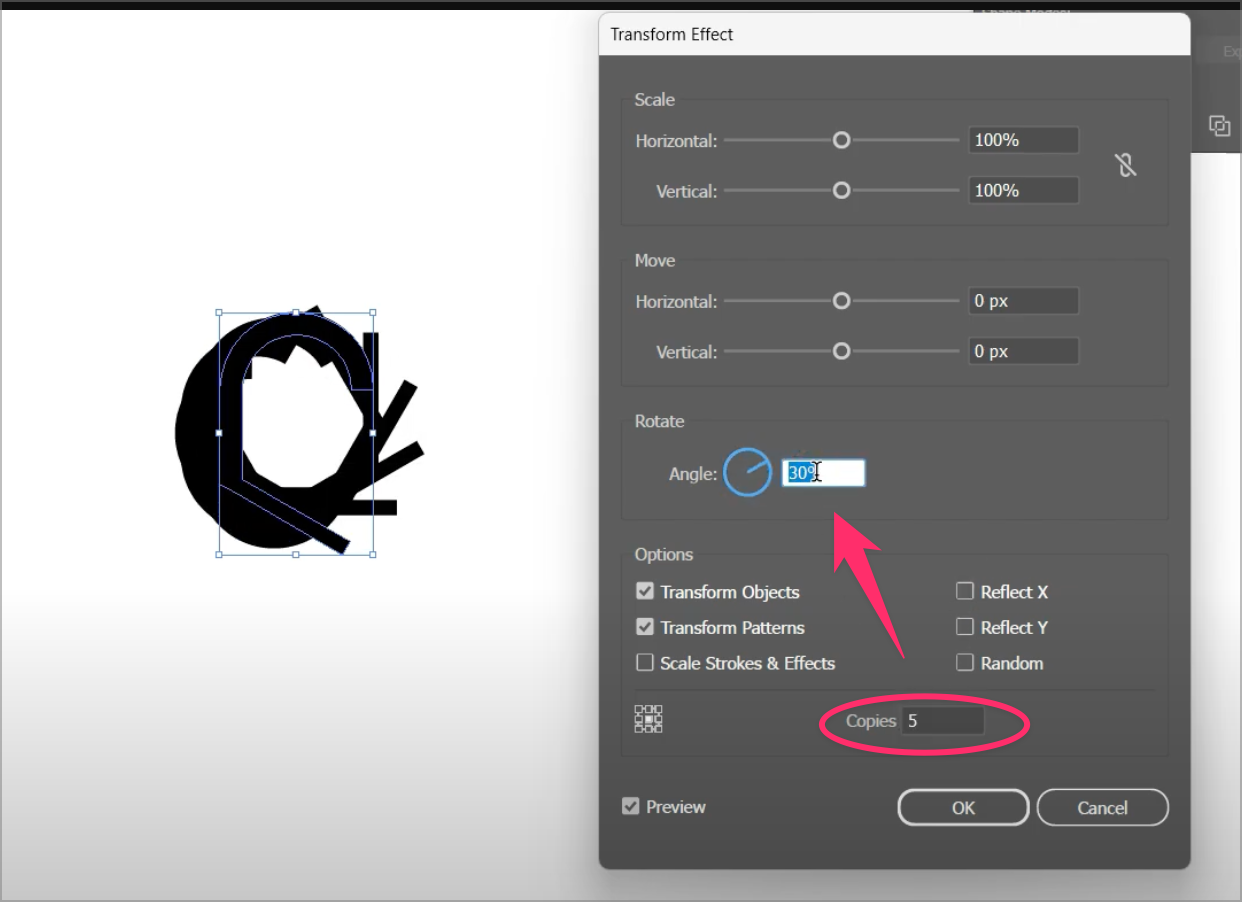 Another example of how added repeat and rotate options to the transform panel could be useful