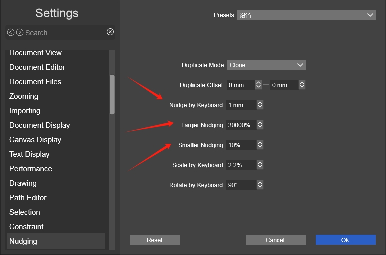 @VectorStyler Those two operations of slight movement do not really need to be added to the list. However, this "larger nudging" should be added. When I click the direction keys, the movement is 1 millimeter, while "larger nudging" is 30,000%. I need to move multiple groups out. Performing the operations one by one requires switching the keyboard back and forth, which is very cumbersome. So I still hope that "larger nudging" can be added to the supported list.0_1727937836899_1.png