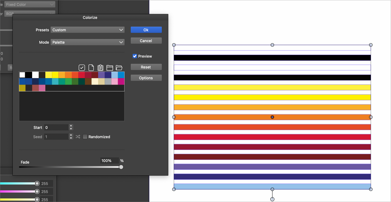 I was envisioning an option where I could select multiple colors quickly from the mode chosen, such as a palette I use.