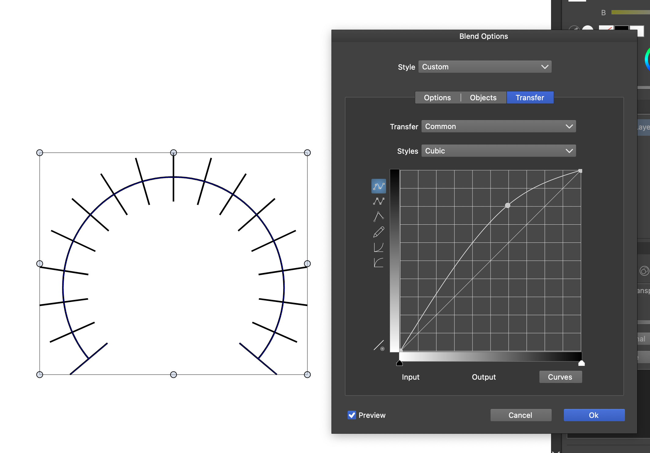 Curves on blending objects on a rounded shape not working?
