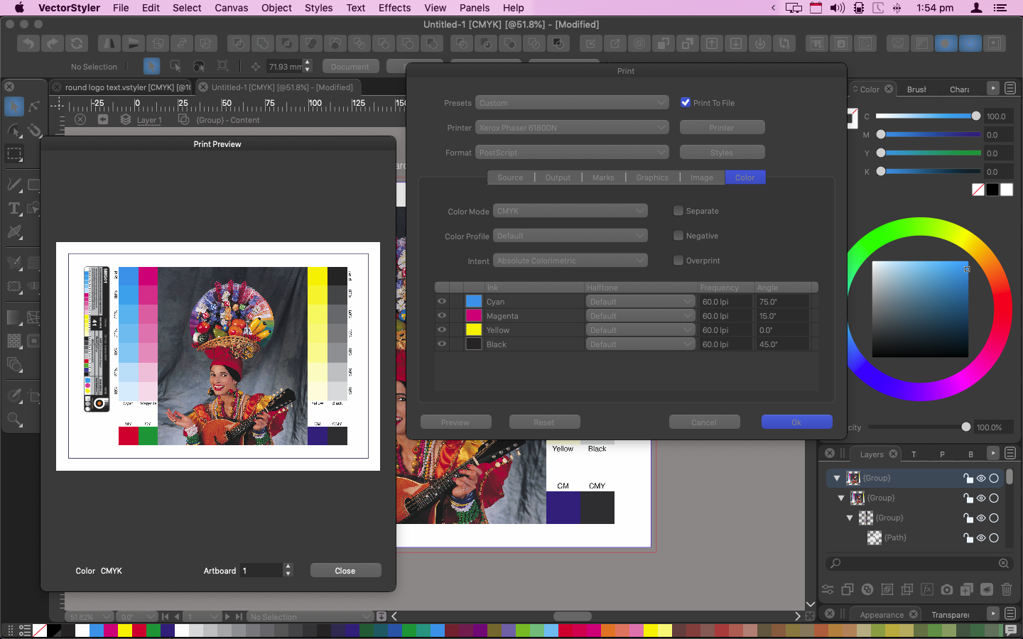 @Boldline Sorry this is a late reply -- I can now print to my Xerox Phaser 6180DN, providing its just A4 with no bleed - CMYK is pure, but can't get trim guides to work as expected or separations to print --- How do you get halftones to work?